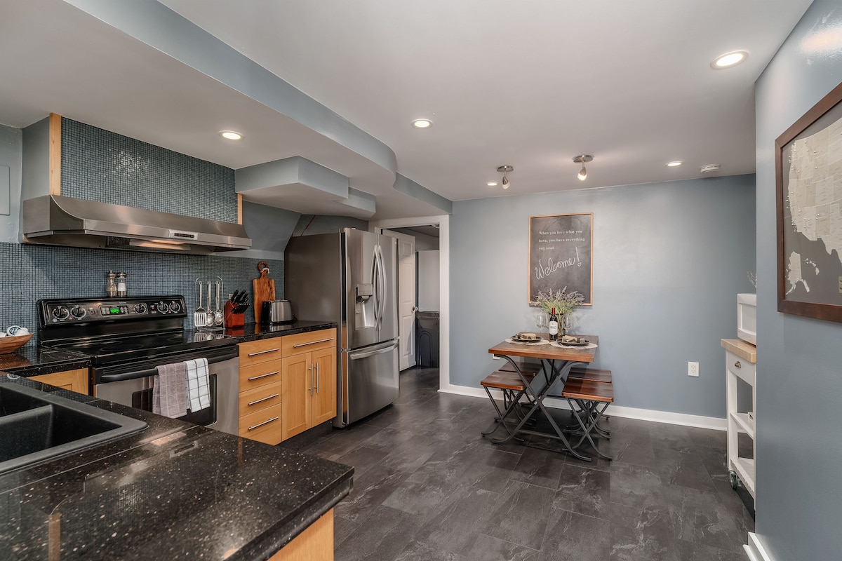 Experience the serenity of riverside living in our private, enchanting retreat nestled on the tranquil banks of the Clackamas River. This guest suite offers 1500 square feet of living space, boasting a private entrance and a spacious deck that grants breathtaking views of both the serene pond and the majestic river. Step inside to discover a haven of comfort and elegance. The gourmet kitchen features SS appliances, sleek granite countertops, and is fully stocked for your culinary needs.
