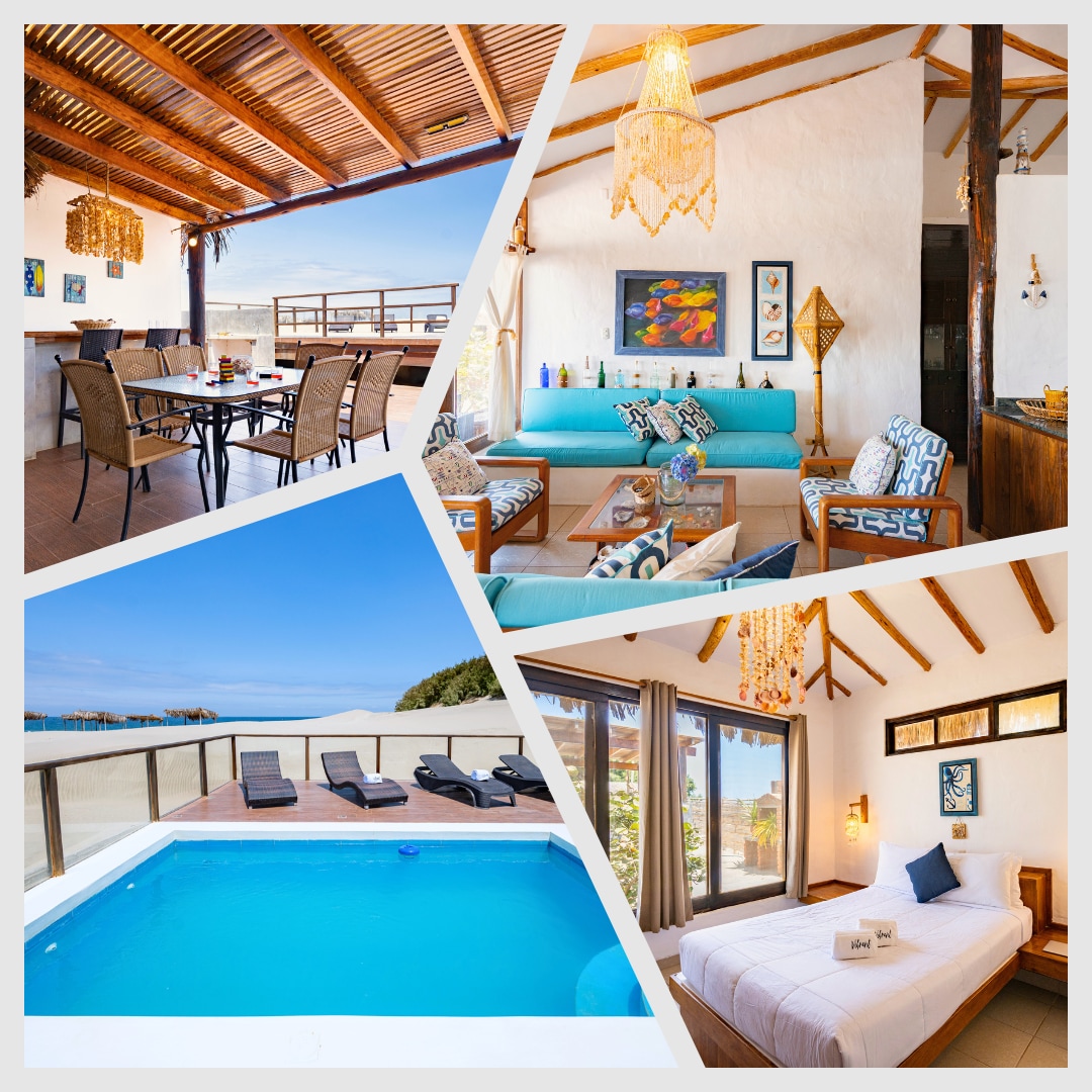 ✨ This is more than a stay – it's a true escape. Whether you're a family, a couple looking for romance, a small group of friends, or a digital nomad seeking inspiration by the sea, this is your slice of paradise. 🌴 Beach house in Vichayito, exclusive beach 15min from Máncora 🏖️ Ocean/sunset views 🏊♂️ Small private pool | ❄️ A/C | 💻 Fast Starlink WiFi 🍳 Outdoor kitchen + BBQ | Private garden 🛏️ 3 beds + sofa bed | Hot water | Washer | 📺 DirecTV | Solar power 🧑🔧 Personalized service
