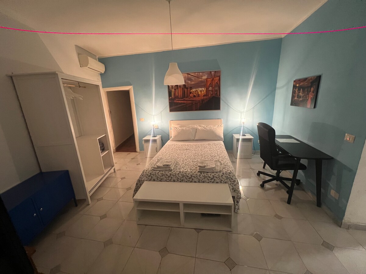 Tourist apartment located in the historic center, inside an ancient building from the early 900 completely renovated. All rooms have imposing frescoes, the bedrooms are very spacious and fully furnished with all the necessary comforts. The living room is decorated in ethnic style with a sofa, dining table, and TV. The kitchen is equipped with all the necessary accessories. In the interior of the apartment there is a large and comfortable terrace.