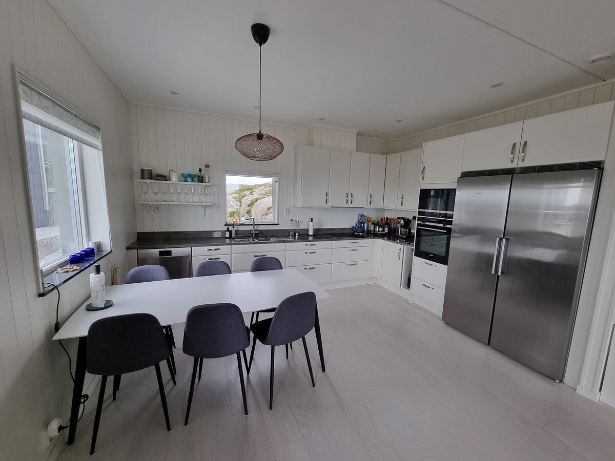 The apartment is located a few minutes' walk from the harbor and with sea views in 180 degrees. 4 beds (2+2) and a fully-equipped kitchen with fridge, freezer, dishwasher, microwave and oven. Bathroom with shower and washing machine. You can have dinner and watch the sunset from the balcony. Bring your bathrobe! You can swim from the cliffs right at your doorstep. Käringön is a car-free island. There is a grocery store, several restaurants and cafés, tennis court, playground within 10 minutes' walk.