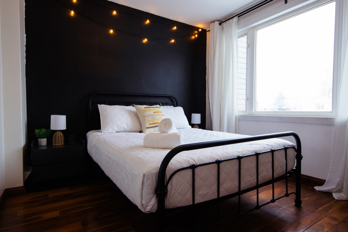 Are you looking for the perfect getaway? 😊 Retreat yourself to a Luxurious, Charming and Modern Suite with a splash of glam.✨ Perfect for couples, families or business trips. Enjoy the Fireplace with a glass of Cabernet Sauvignon🍷Perhaps you would also like to partake in a game of pool on our custom pool table 🎱, or take a hot rainfall shower in a delightful Stone Spa Shower💦. But, most importantly, our place is yours to relax and unwind😊