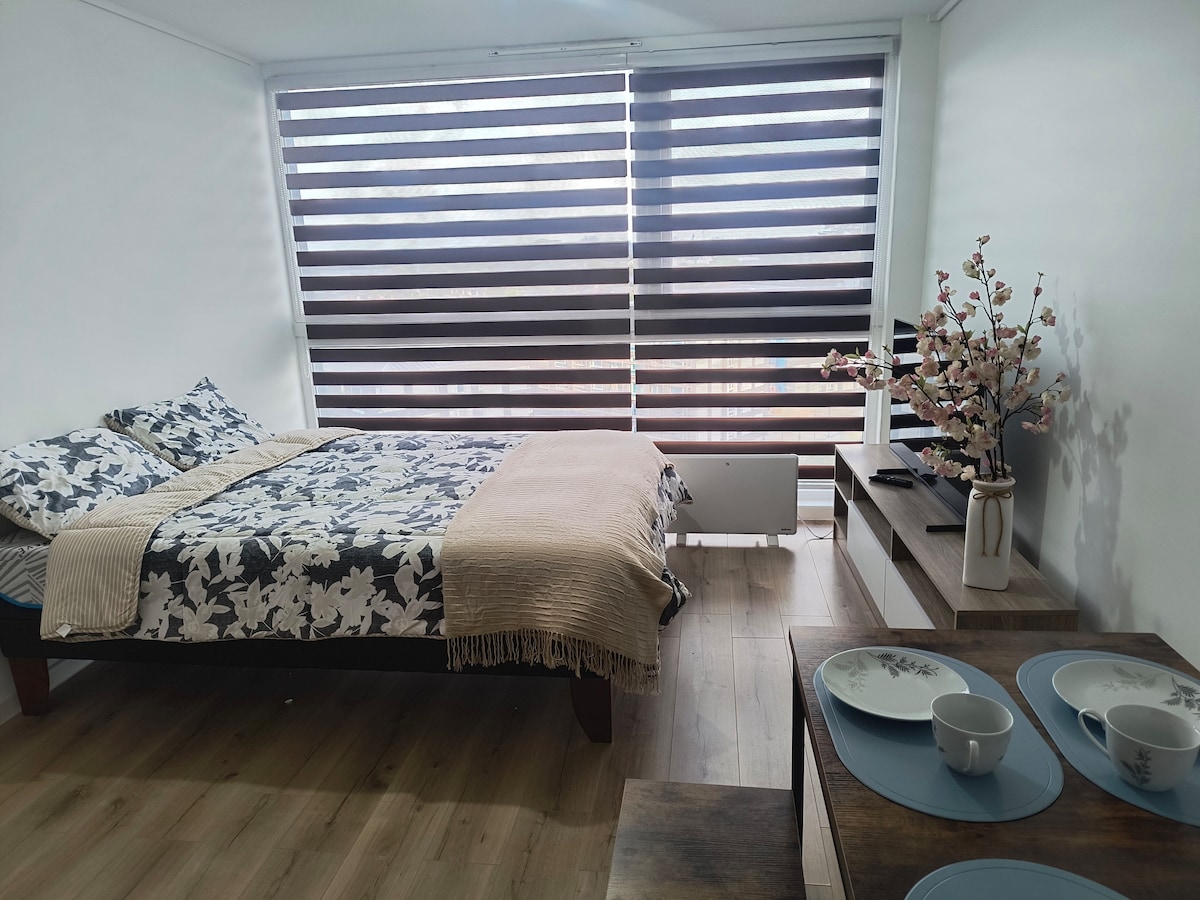 Modern and cozy studio in the heart of Osorno, ideal for couples and business travelers. Great location, close to supermarkets, bars, pharmacies and with direct connection to key routes. Perfect starting point to visit Puyehue, Lago Rupanco, hot springs, Frutillar and more (all within 120 km). Equipped space, fast Wi-Fi, Smart TV and kitchen. Impeccable cleanliness and flexible check-in. Your perfect base in southern Chile!
