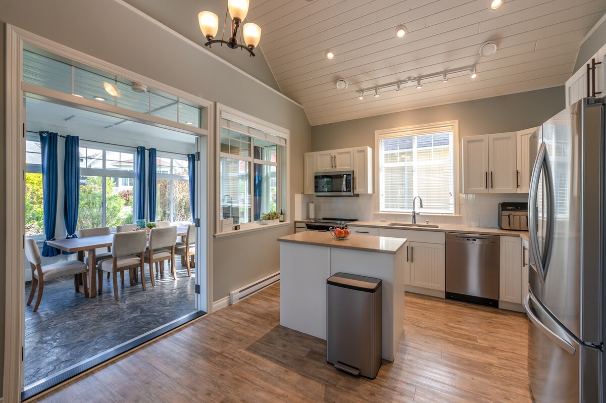Welcome to your home in the heart of Wine Country! Enjoy a dip in the heated 16-person swim spa, a short walk to nearby wineries and restaurants, or just taking in the breath-taking views! The home boasts: -completely renovated, with amazing outdoor patio overlooking vineyards -smart TVs in all 5 bedrooms -in-home gym to work off those wine calories -pool table for hanging with friends and family *Per regulations, this property is registered in BC
