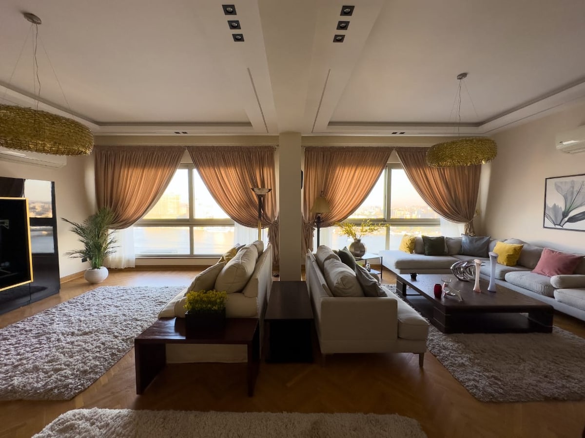 A hotel apartment with a full view of the Nile, luxurious from one end to the other