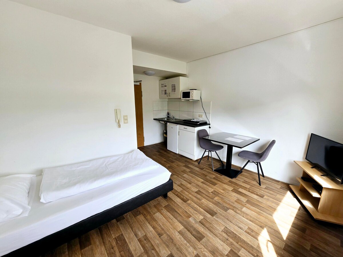 Welcome to STAY Apartments – in the middle of Heidenheim an der Brenz you will find a well thought-out apartment. The bedroom with two single beds offers restful sleep, the modern bathroom is right next to it. In the room there is a practical kitchen corner with refrigerator incl. Freezer, microwave with oven function, dishes, kettle and French press coffee machine available. A small French balcony brings light and air into the room.
