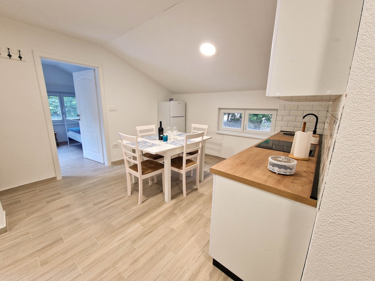 Opustite se sa svojom obitelji u ovom ugodnom smještaju. Mirno mjesto za bijeg od gužve i galame i pravi odmor. Unikatna destinacija pruža novouređeni apartman sa vanjskim prostorom za opuštanje i roštiljem.