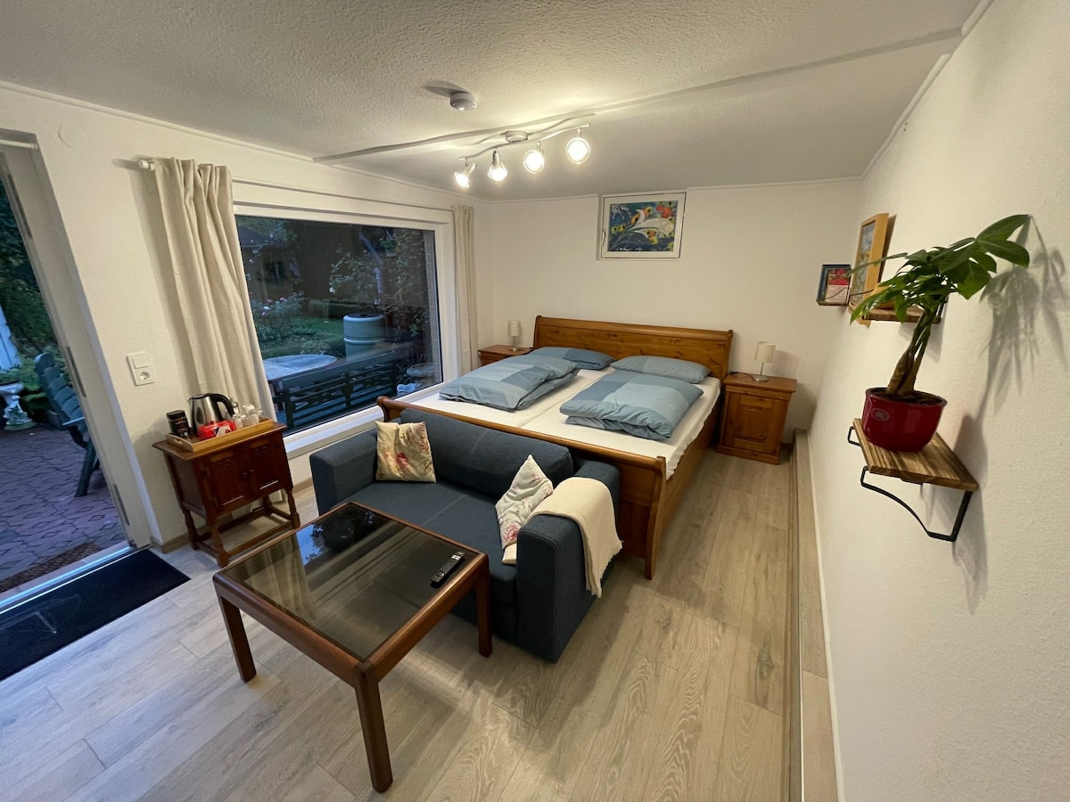 MY FAVORITE ROOM is an apartment with a private shower room. Wonderfully located in a large garden, directly adjacent to our house, ground floor apartment with terrace and beach chair. Comfortably furnished, cozy room with Wi-Fi, TV and comfortable box spring bed. Kitchenette with "delicious" Nespresso.