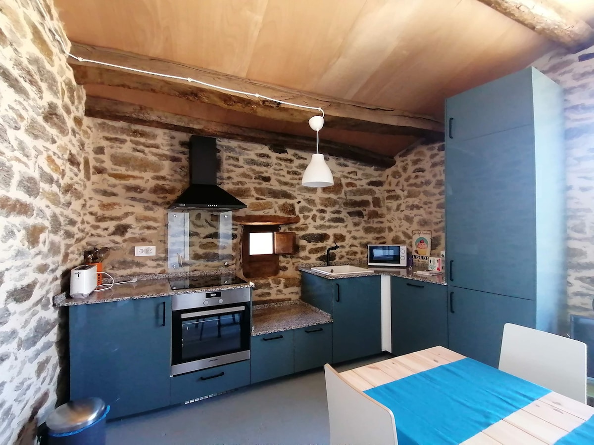 A Curuxa country house is located in the heart of Valdeorras. In our small 2-story house you can enjoy a kitchen-living room with a sofa in front of a beautiful fireplace, a bedroom with a large double bed, a fireplace, a bathroom and a balcony. You can also enjoy a beautiful garden on the banks of the river with a barbecue and a wood-burning oven where you can have breakfast, lunch or dinner under a palloza and a sofa under a pergola. If you are looking for a relaxing and peaceful getaway, it is guaranteed.