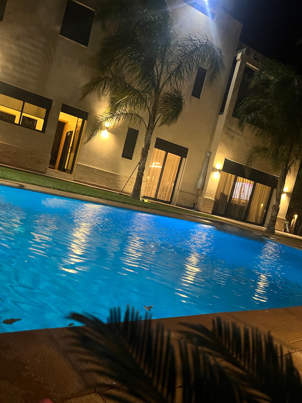✨ Bienvenue dans votre havre de paix à Marrakech exclusivement pour les familles et couples recherchant calme,confort et securité. Nous sommes très attentifs à la tranquillité et à la propreté, et toujours disponibles pour nos voyageurs. ✨ Située à 8 minutes du centre-ville. Profitez d’un séjour inoubliable avec une piscine privative , une petite salle de sport privée, des espaces de détente luxueux et de nombreux équipements haut de gamme,savourez les repas préparés par notre gouvernante.