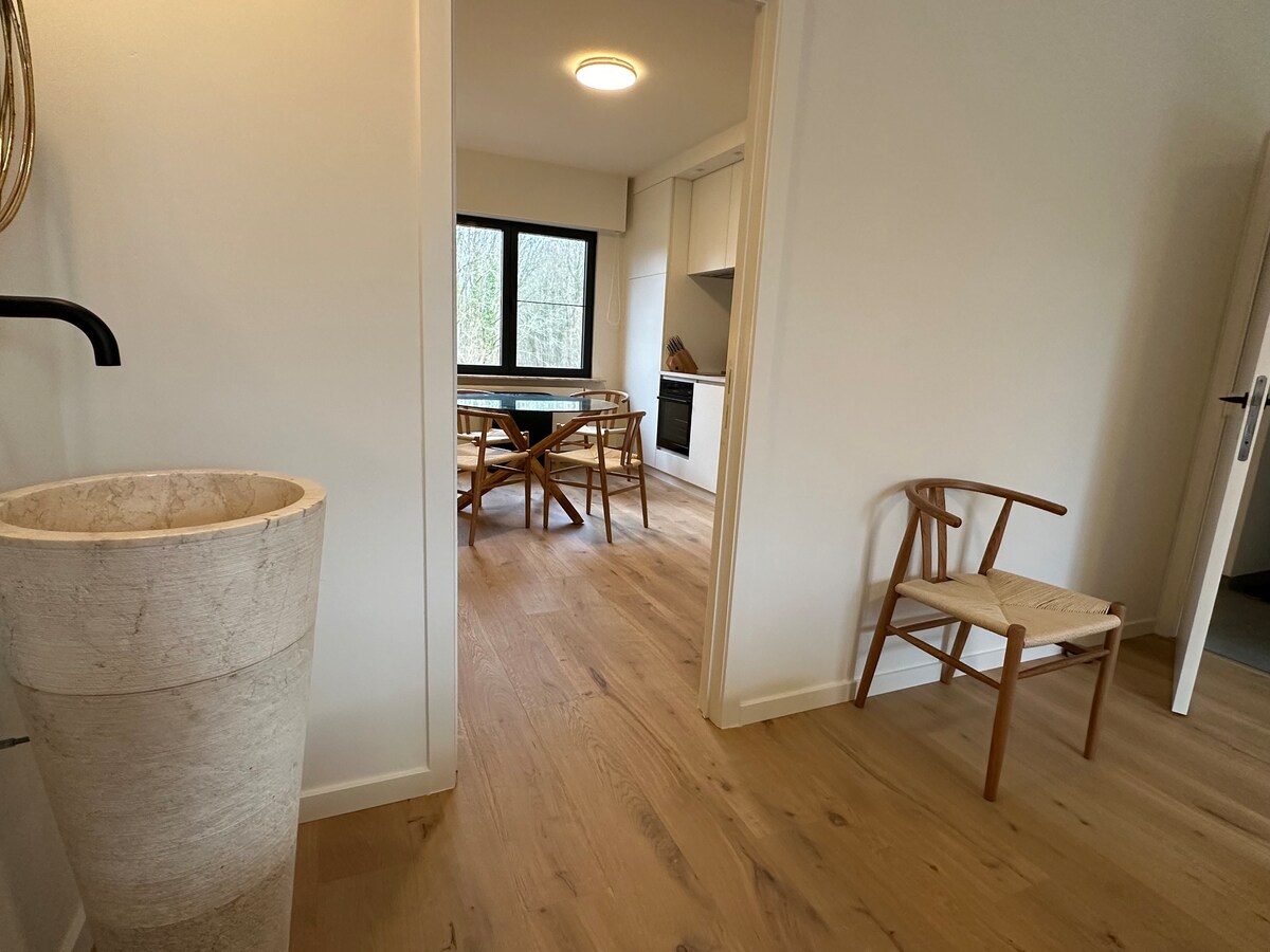 Discover your perfect stay amidst the green beauty of Leuven. This apartment is surrounded by the enchanting Linden forest. A brief stroll through the woods takes you to Wine Castle Vandeurzen's vineyards, offering a charming escape as your 'base camp' to explore the region's biking and walking opportunities. Just 14 minutes from Leuven center by bike or bus, and a short car ride to the research park Haasrode for our business travelers. Welcome to your peaceful retreat!