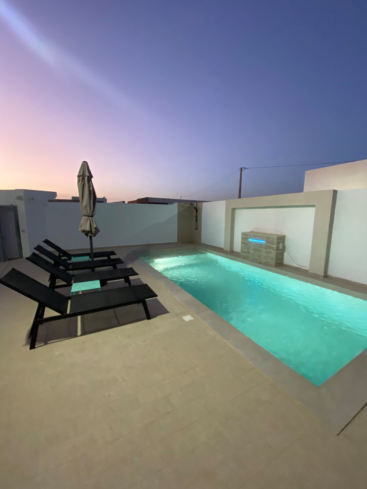 Familles, Couples Mariés ou Amis (non mixte) uniquement GROSSE NOUVEAUTÉ 2026 ! Déjà équipée d'une superbe piscine 9×4, Jacuzzi et pataugeoire, le tout sans aucun vis-à-vis. Venez découvrir notre cascade XXL de 4m de pluie d'eau, du jamais vu à Djerba! Venez vous détendre sur les 4m de matelas nichés entre le mur végétal et la cascade ainsi que la piscine!Relaxation garantie au bord de la piscine! (Photos prisent en Décembre 2025)