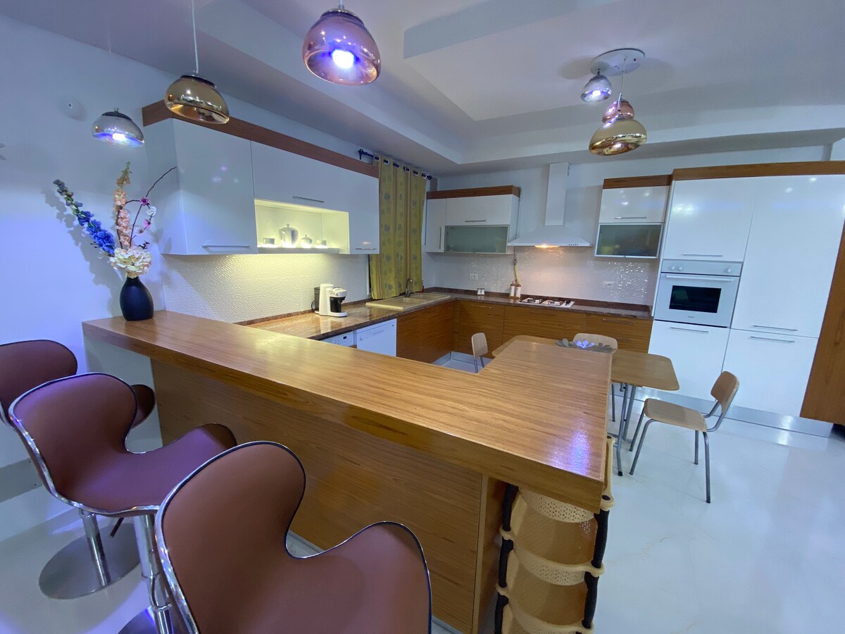 The apartment is located in the best area of Sousse, five minutes from the port. There is the amusement park, the aqua parks and several activities within walking distance. The residence is secure and the environment is quiet. The apartment has a very nice vibe, it feels relaxed, like home. You can see the dawn, the sunset and a pleasant view even at night. This is a place where you can enjoy nature and a touch of luxury at the same time.