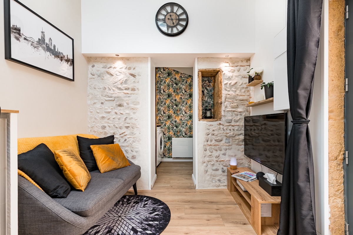 Welcome to our little paradise, completely renovated by us and designed to bring you calm, serenity and conviviality, all 200 meters from the metro! Perfect for exploring Lyon (Part-Dieu and Bellecour 18 min away), while enjoying the authenticity of village life in Oullins and its good addresses! The +: a private terrace of 10 m², perfect for breakfast, an aperitif at the end of the day or even your morning yoga or sports session!
