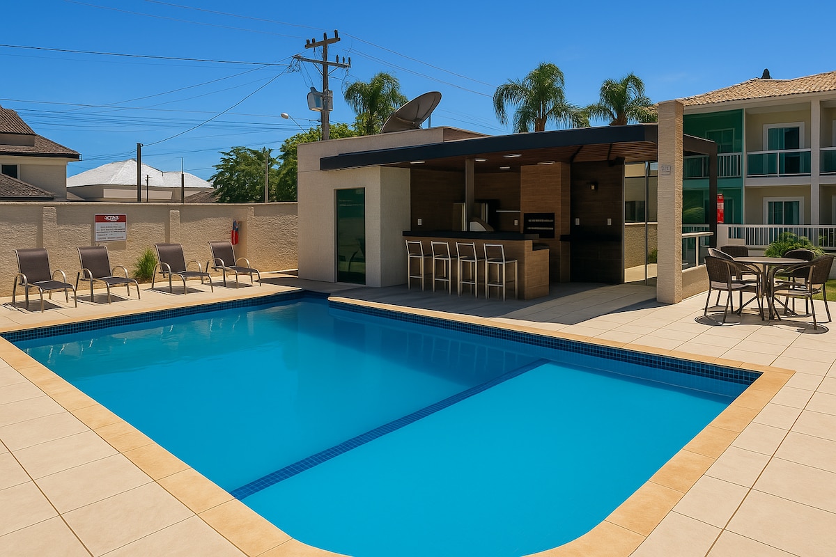 📍 Central location - Cabo Frio 🛌 Ideal flat for a couple with a child SPACE: Queen size bed + 1 single auxiliary Air conditioning ❄️ 43” Smart TV 📺 Fast Wi-Fi 📶 Compact kitchen 🍽️ (Air Fryer + rice cooker) Bed and bath linens 🧼 Home office space 💻 CONDOMINIUM: Swimming pool 🏊 Sauna 😌 Gym 🏋️ Restaurant 🍽️ Garage 🚗