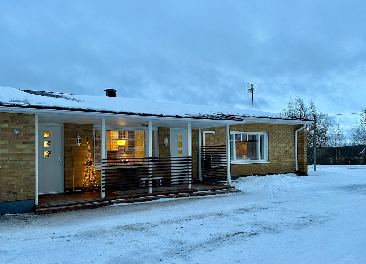 Peaceful grandma's cottage in the countryside in the Torne Valley near the Swedish border. Easily accesible from E8 road. A short distance of less than 3 km to the municipal centre of Ylitornio, 6km to Swedish side Övertorneå for shopping. Around you will see beautiful valley landscapes on both the Finnish and Swedish sides. The Torne River is less than a kilometre away. On winter time you can enjoy snow right at your front door. We offer sledges free of charge.