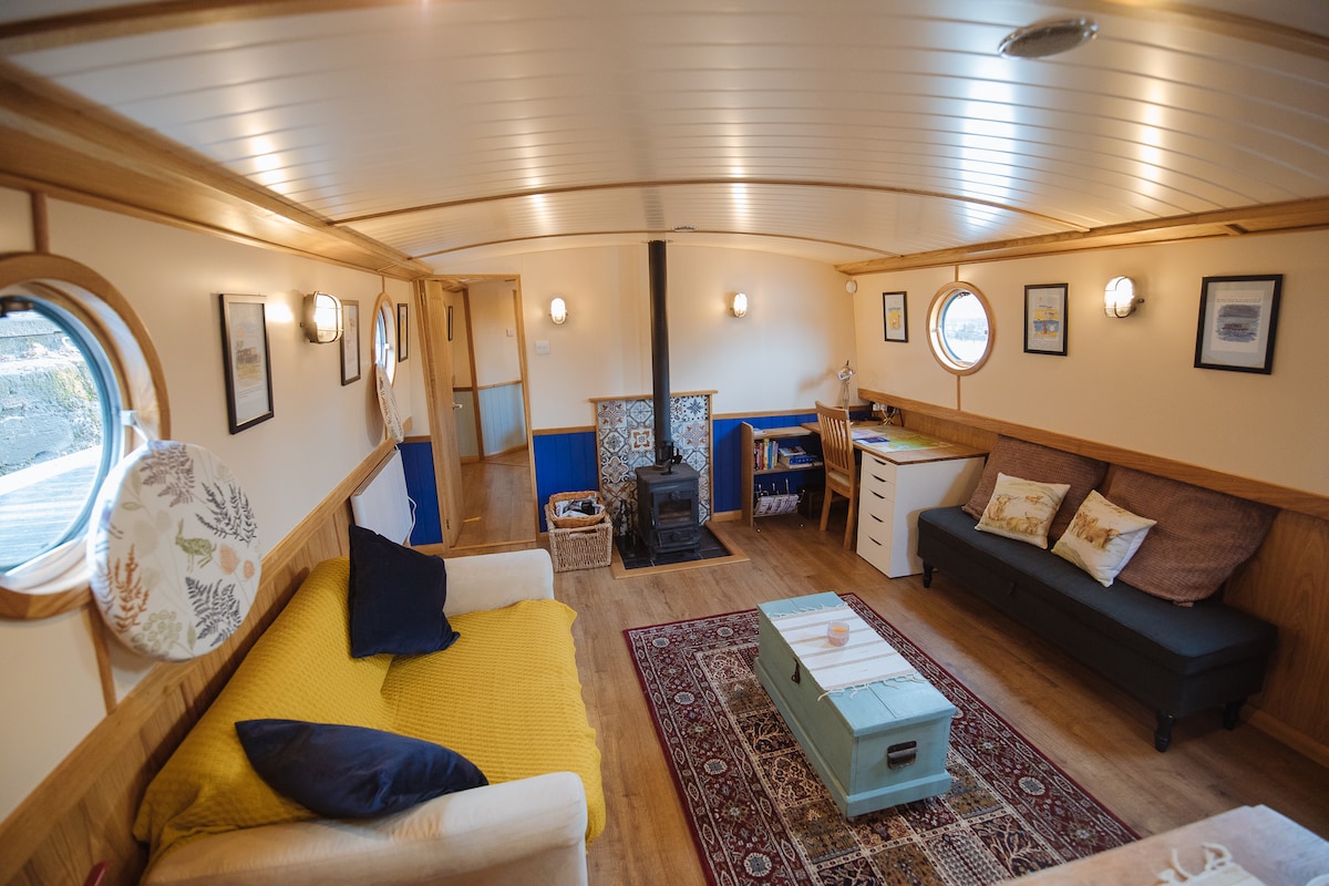 The Gerda: A Floating Oasis in Scotland's Vibrant Heart Nestled on Speirs Wharf, this unique canal boat offers tranquil living minutes from Glasgow's bustling center. Explore world-class museums, galleries, and nightlife from your serene waterside base. Experience Glasgow authentically aboard this wide-beam marvel on the historic Forth and Clyde Canal, where urban energy meets canalside calm.