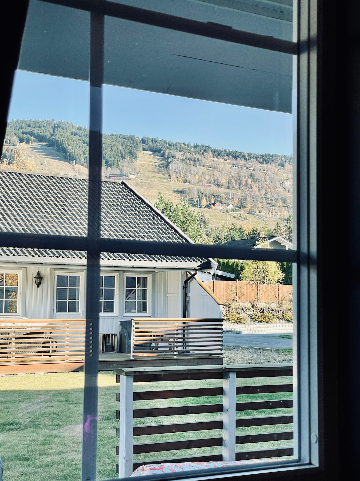 Nice apartment with 1 bedroom and large loft. Double bed in the bedroom, and 3 double beds in the loft. Wi-Fi and TV in the living room/loft. Open kitchen and living room solution with dining area for 8. Apartment has fridge, freezer and dishwasher. There is a Nespresso coffee machine and kettle and otherwise all equipment for the kitchen. Tiled bathroom with sauna, and washing machine with drying function. The apartment has a garage Large veranda with barbecue and amazing views. 100 m from the ski slope/bike park. Ski in/out. 5-10 min to Hunderfossen.