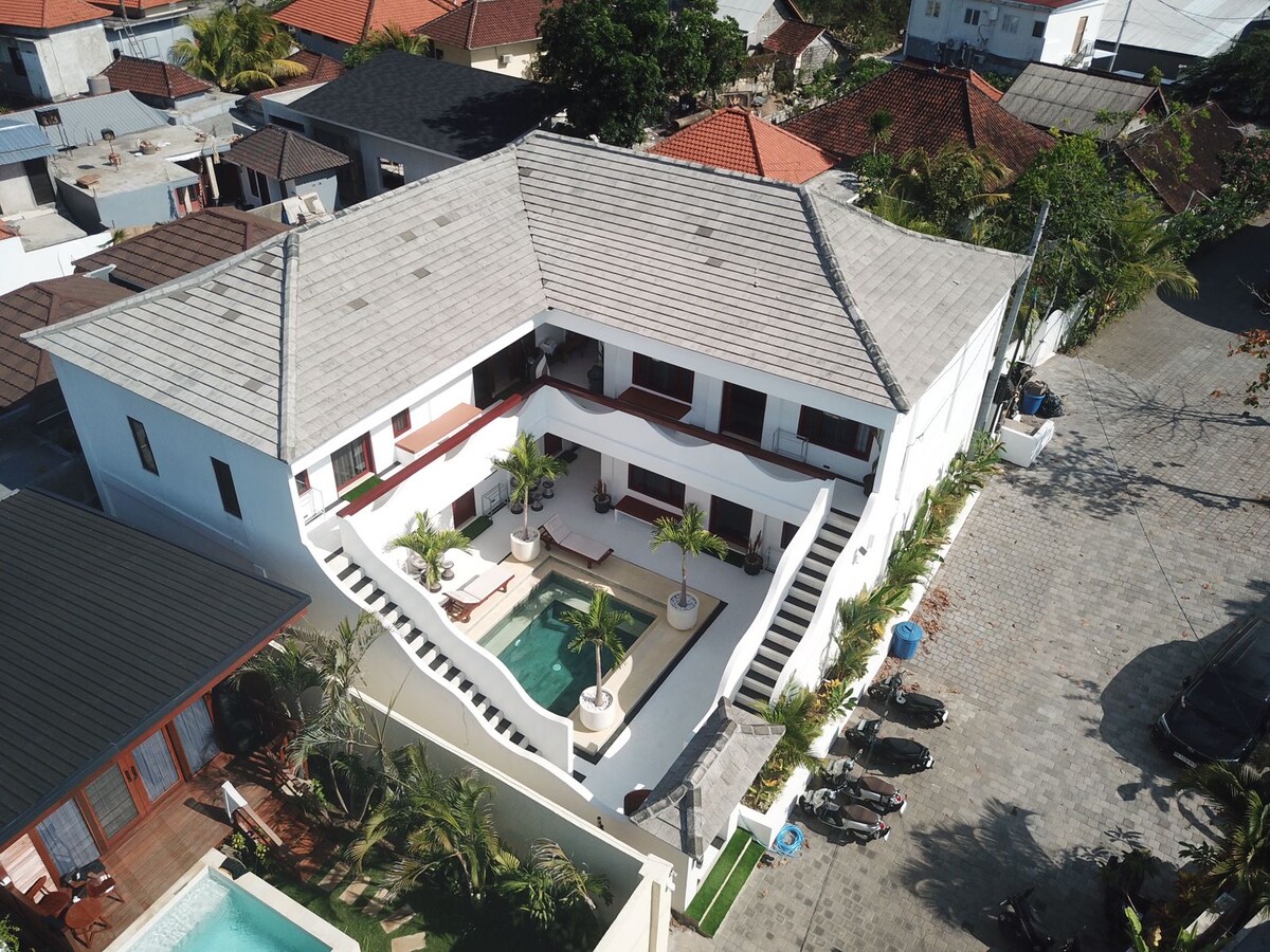 Ubicado en el paraíso tropical de Uluwatu, este hotel ofrece una experiencia única. Sus ocho elegantes villas rodean una espectacular piscina central, creando un ambiente de intimidad y relajación. Cada villa cuenta con un amplio salón, una terraza con vistas a la piscina, un baño con ducha, bañera y una espaciosa habitación con cama King-size en el piso superior.