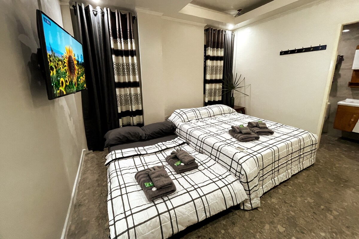 Yes, breakfast options are available ☕. Roomy, comfy, and ready for up to 4 happy humans. You’ll find two queen beds, a sofa bed, blazing-fast Wi-Fi (200 Mbps), and a 43” UHD TV for binge-watching guilt-free. Hot showers? Check. Fresh towels and toiletries? Double check. Peaceful location away from traffic, but close enough to malls, groceries, and restaurants so you won’t starve.