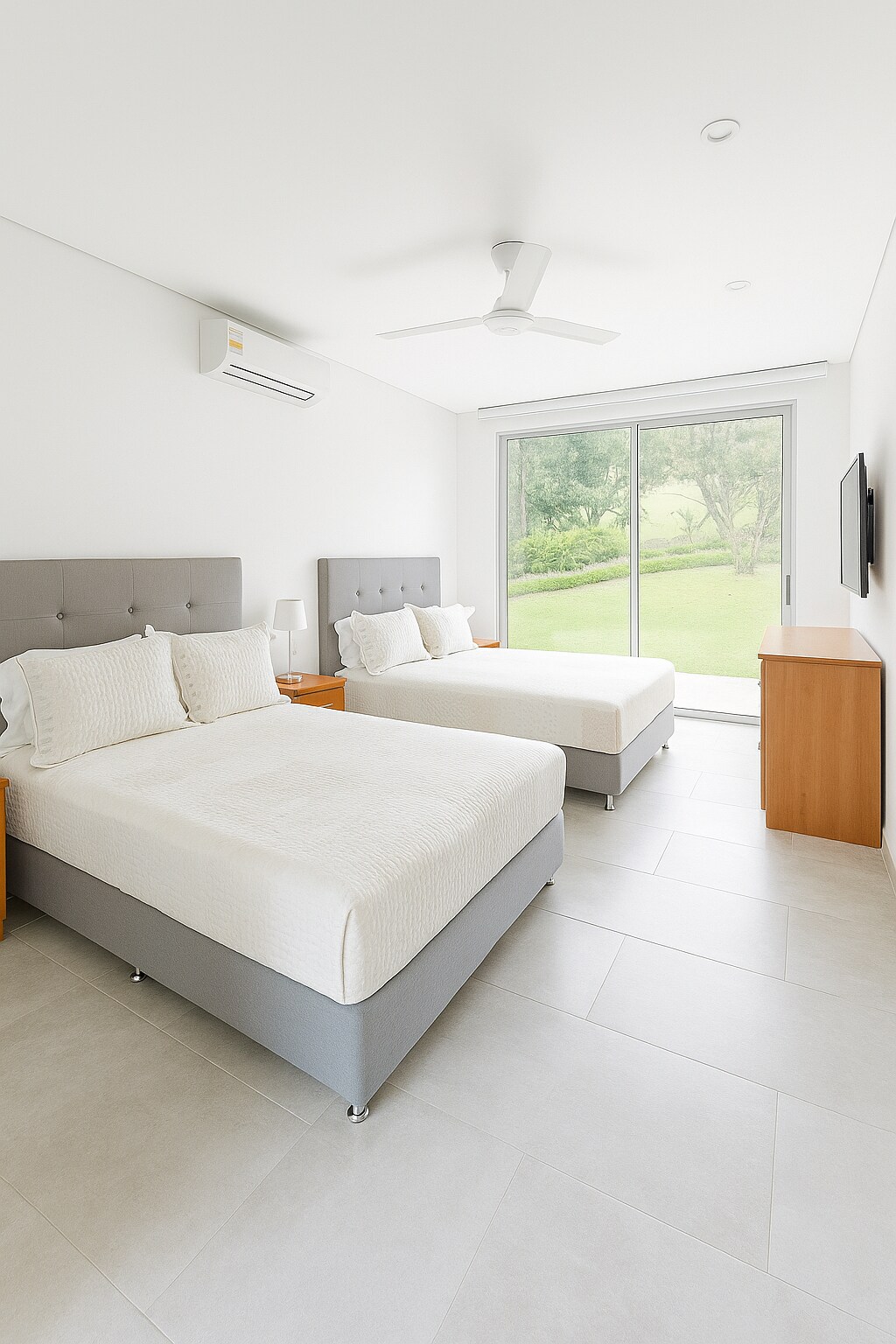 Relax in this modern and private house, ideal for groups and families. Located in a gated condominium with 24/7 surveillance, you will enjoy total tranquility, a large swimming pool, a trampoline for children up to 12 years old, and a spectacular view of the mountain range. The contemporary design and 4,000 m2 of land offer privacy and comfort, while its open spaces are perfect for sharing, resting and reconnecting with nature. The house has solar power ☀️Wifi- Starlink