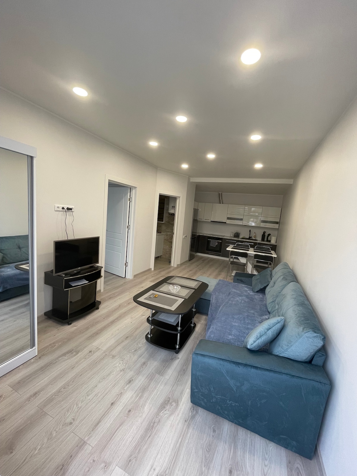 Comfortable and stylish 37 sq. m. studio close to the sea - a great choice for a carefree vacation! Drink morning coffee on the balcony while listening to the seafood, because before it only 1 minute walk. You can reach the center of the Holy Place in 10 min. During the season, there are plenty of cafes, shops, bike rental locations and children's entertainment nearby. Maintained and fenced area, free parking. Located in this new construction house, the apartments have internet for work in the distance.