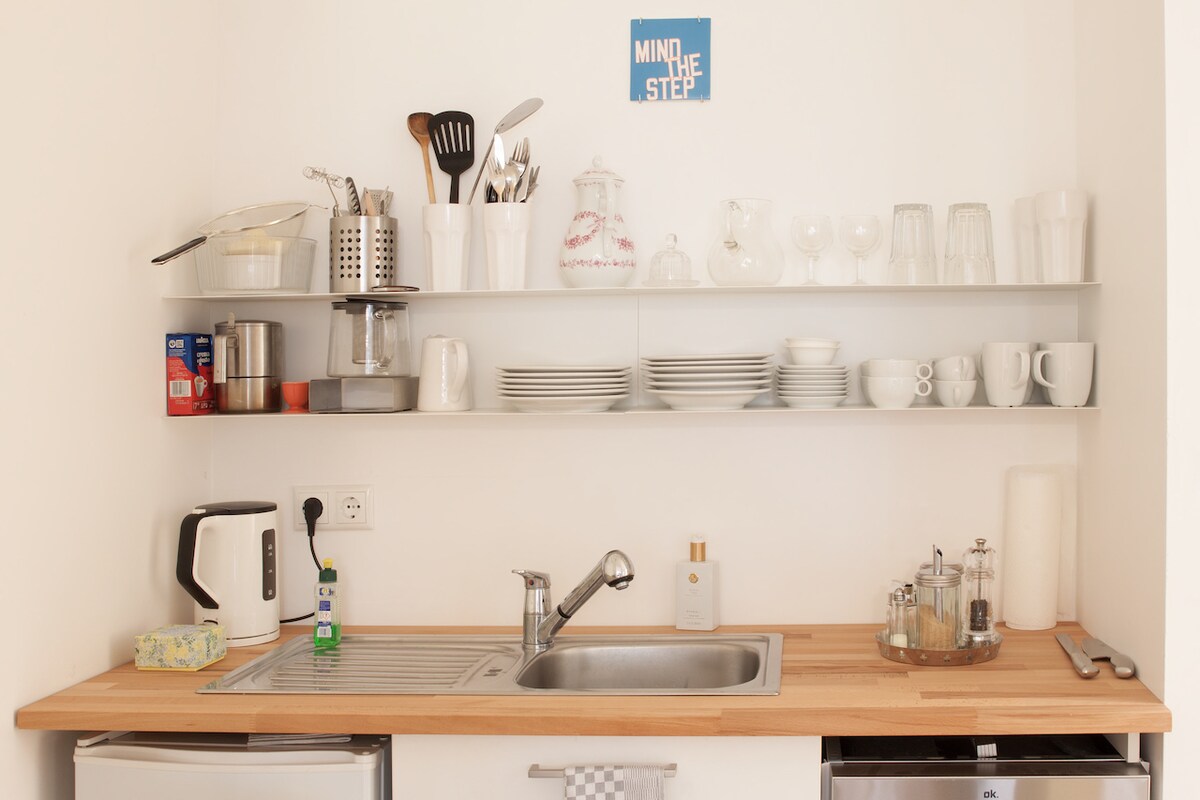 Spacious & bright one-bedroom apartment (26 m²) with kitchenette and separate bathroom within walking distance of several tram and bus lines as well as the Cologne-Ehrenfeld train station. The apartment is located on a quiet residential street on the first floor of an old building from the nineteenth century. In the front yard - right in front of the apartment - there is also a small terrace with two garden chairs and a small table for exclusive use.