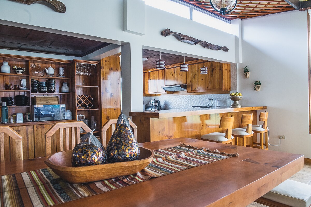 Located 15 minutes from Penipe, 20 minutes from Riobamba, 30 minutes from Baños, our house combines contemporary elegance with the tranquility of the countryside. Designed to offer an unparalleled comfort experience, The house consists of green areas where you can enjoy the scenery and recreational areas, ideal for families and couples. We have 3 bedrooms, 1 living room, 2 dining rooms, a gym, Jacuzzi, laundry area, BBQ area, and a wood-burning oven. WE GUARANTEE YOU A GREAT STAY!!