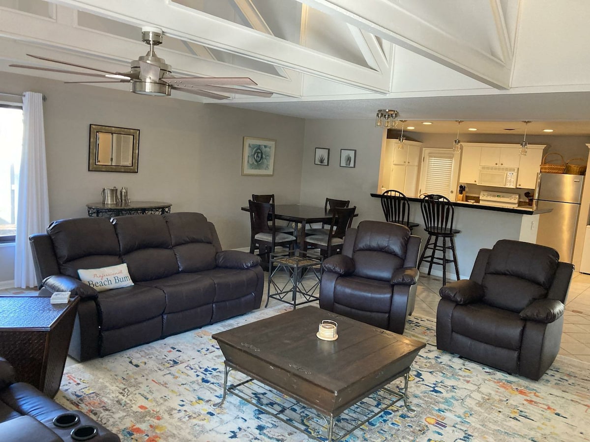 5-10 minute walk to the pristine Hilton Head beach, retreat to your spacious villa in Queen's Grant of Palmetto Dunes. With nearly 1500sq ft and lofted ceilings, you can spread out comfortably. New living room furniture that all reclines, amazing king green tea memory foam mattress in both bedrooms, and a fully stocked kitchen (blender, toaster oven, crock pot+.) The master and living room open up to a private back patio equipped with a grill, dining room table and beach accessories.