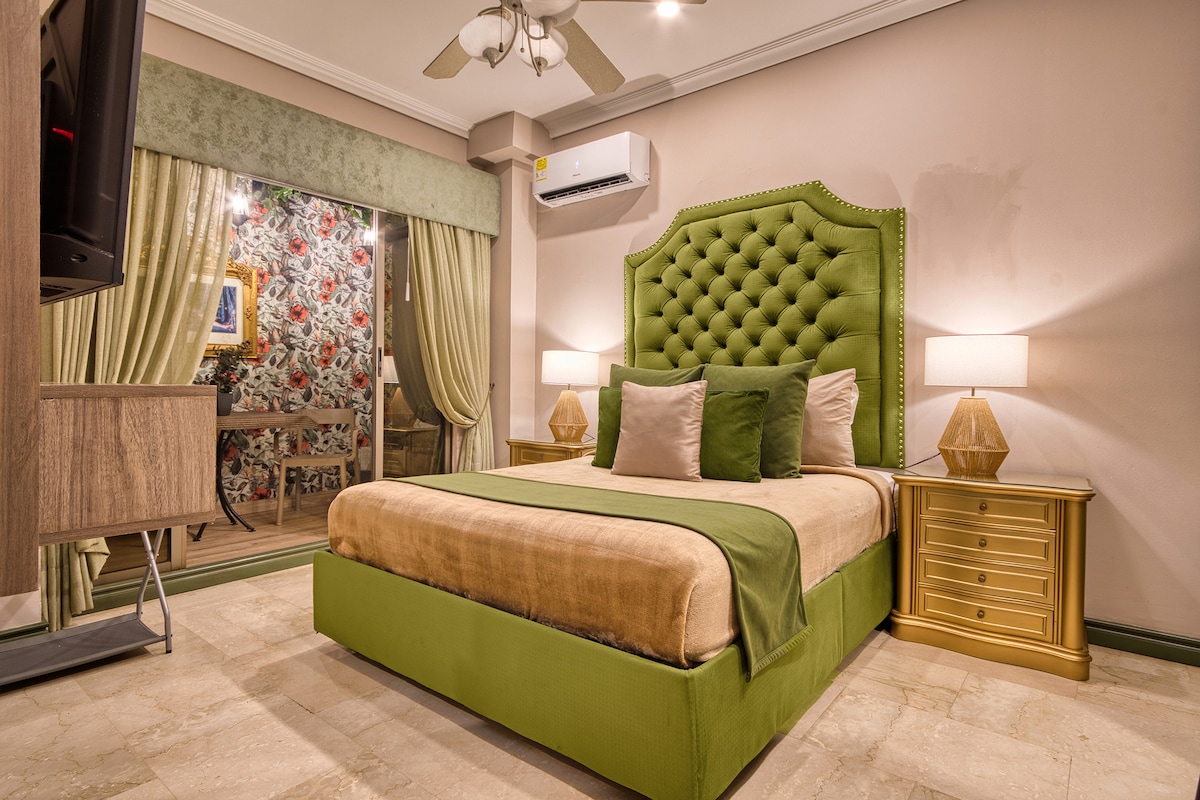 The Standard Victorian Room is a haven of classic charm and contemporary serenity. With 22 m², it combines Victorian style with green tones inspired by nature, transmitting balance, elegance and freshness. It has a private internal patio, enclosed but full of natural light and organic atmosphere, perfect for reading, enjoying a coffee or simply relaxing. Its interior design celebrates the harmony between the classic and the natural, inviting you to disconnect from the outside world.