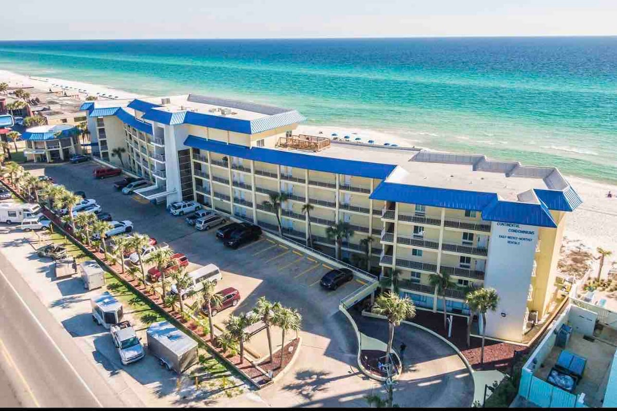 NO EXTRA FEES AFTER BOOKING! Wake up to Gulf views from your PRIVATE BEACHFRONT BALCONY in this charming, low-rise condo. Step directly onto sugar-white sand and emerald waters just outside your door. Enjoy a year-round, seasonally heated pool with an easy walk to Pier Park for dining, shopping, attractions, and nightlife. Looking for different dates or layout? I own 5 condos in this building. Click my host profile, then scroll down to view all of my listings.🌴