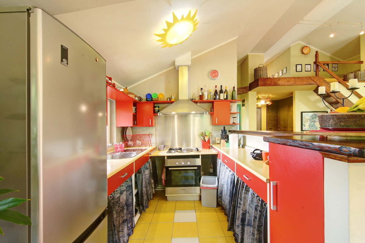 This beautiful open-space apartment with a garden view, located just 20min away from the city center, offers a quite bit of heaven where you can kick back and relax with your family and friends. The garden is a wonderful space for smaller gatherings (up to 15 people), BBQing in the sun, or just enjoying the relaxing breeze and sounds of the Zvezdara forest.