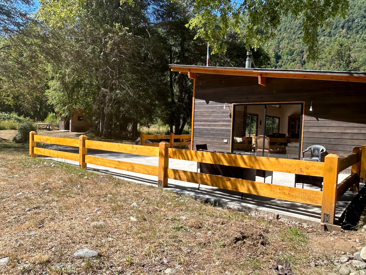 The cabin has a natural feel and rustic touch within amazing surroundings of the native forest and trees all around you. The cabin has been built with native and sustainable wood. it is well equipped. Is very cute and cozy space with a large veranda with an outdoor seating. There is a nice river with access within the property with a picnic table next to it to enjoy listening the river. Big sunny green garden, picnic table to enjoy the view of the mountains, a fire-pit and couple of hammocks.