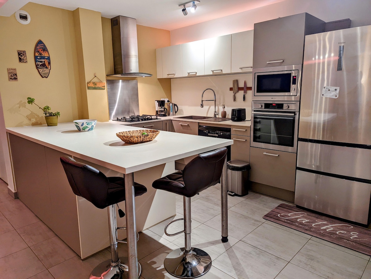 Spacious and modern apartment, fully equipped and air-conditioned. It has a large furnished terrace with stunning views of the sea, the port of Papeete and the mountain. It is conveniently located in Papeete on the 3rd floor of a recent and secure residence with swimming pool, 5 minutes from the airport, 7 minutes from the city center and its main attractions (Toata Square and its restaurants, the waterfront promenade, the food trucks of Place Vaiete, the Papeete market, the ferry dock, etc.)
