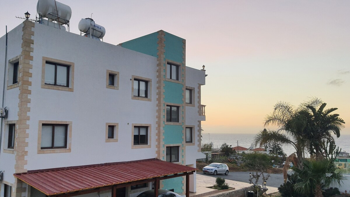 LUXURIOUS AND COMFORTABLE AND LARGE APARTMENT 120 SQM WITH 2 BEDROOMS. AND A COMFORTABLE KITCHEN AND LIVING ROOM IN A VERY QUIET AREA WITH A VIEW OF THE WONDERFUL SUNSET OF POMOS WHICH COMBINES MOUNTAIN AND SEA. THE APARTMENT IS 200 METERS FROM THE SEA.
