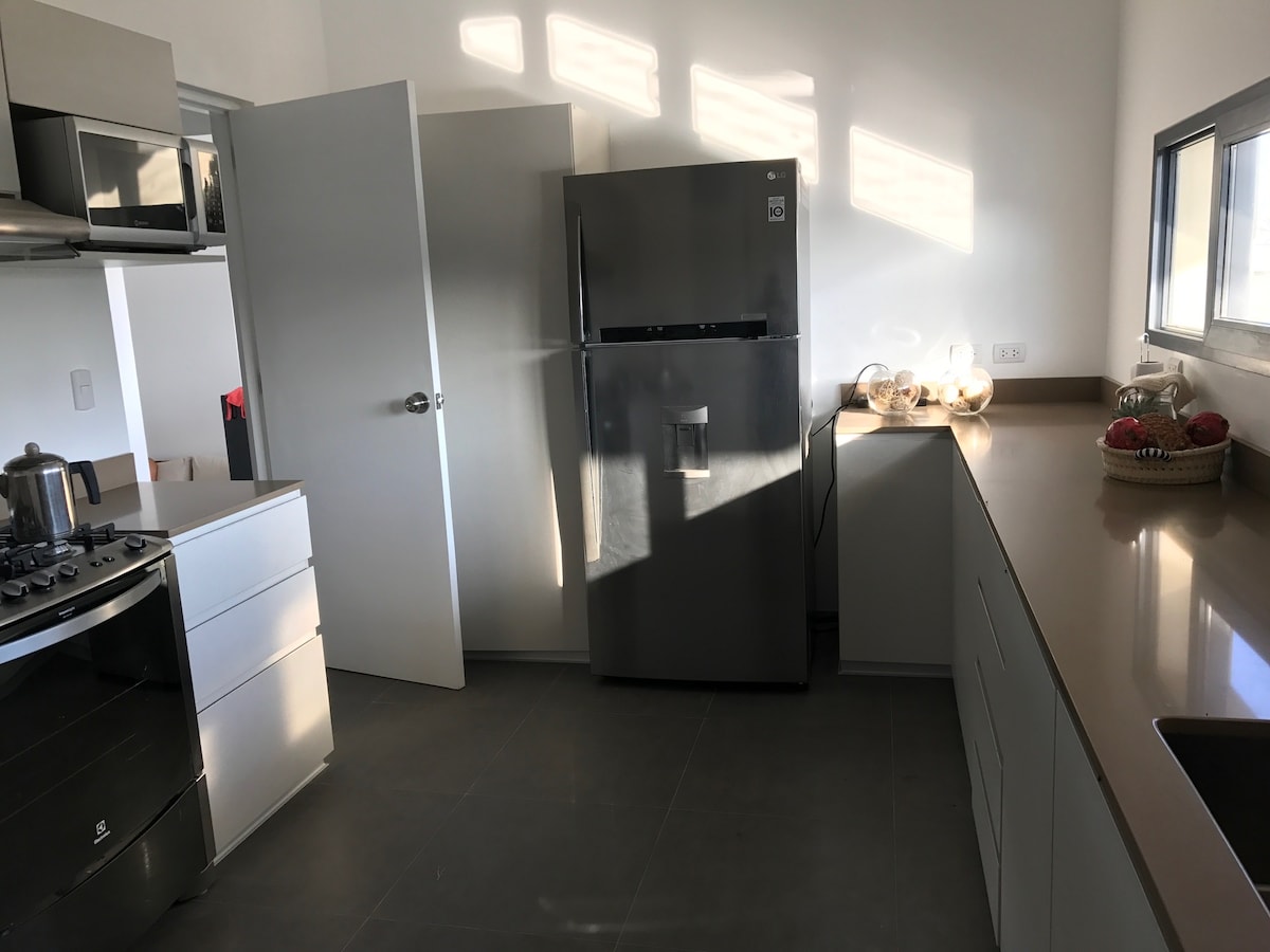 Beautiful house with 5 bedrooms that can hold up to 14 people (extra fee applies for over 12 guests). A modern and yet very functional home, totally equiped. Located in the exclusive Viento Sur condominium, which is neihgbouring to the Paracas National Reserve. Amazing views to the National Reserve and the Paracas bay and 300 mts away to the kitesurf/windsurf Spot.