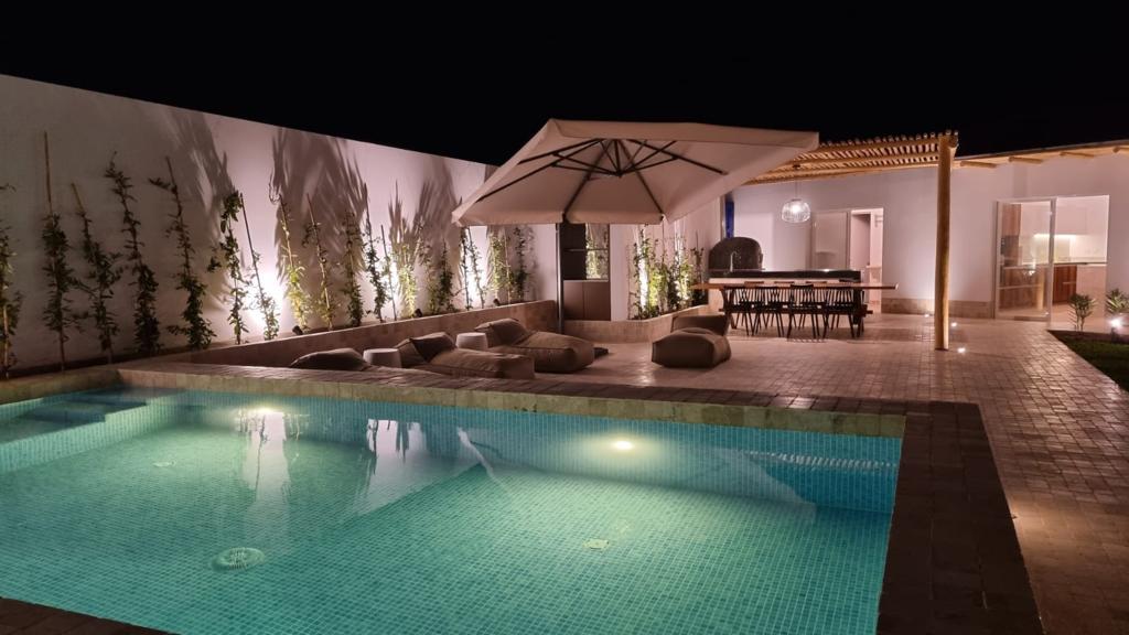 Cozy new house with luxury finishes and a pool that will take your breath away, perfect for spending time with family or friends who love nature and want to enjoy the beautiful ecosystem. Located just minutes from the Paracas National Reserve, in the "Viento Sur" Private Condominium, we provide 24-hour security and parking service. Perfect location close to the beach, if you are a water sports lover you will love it