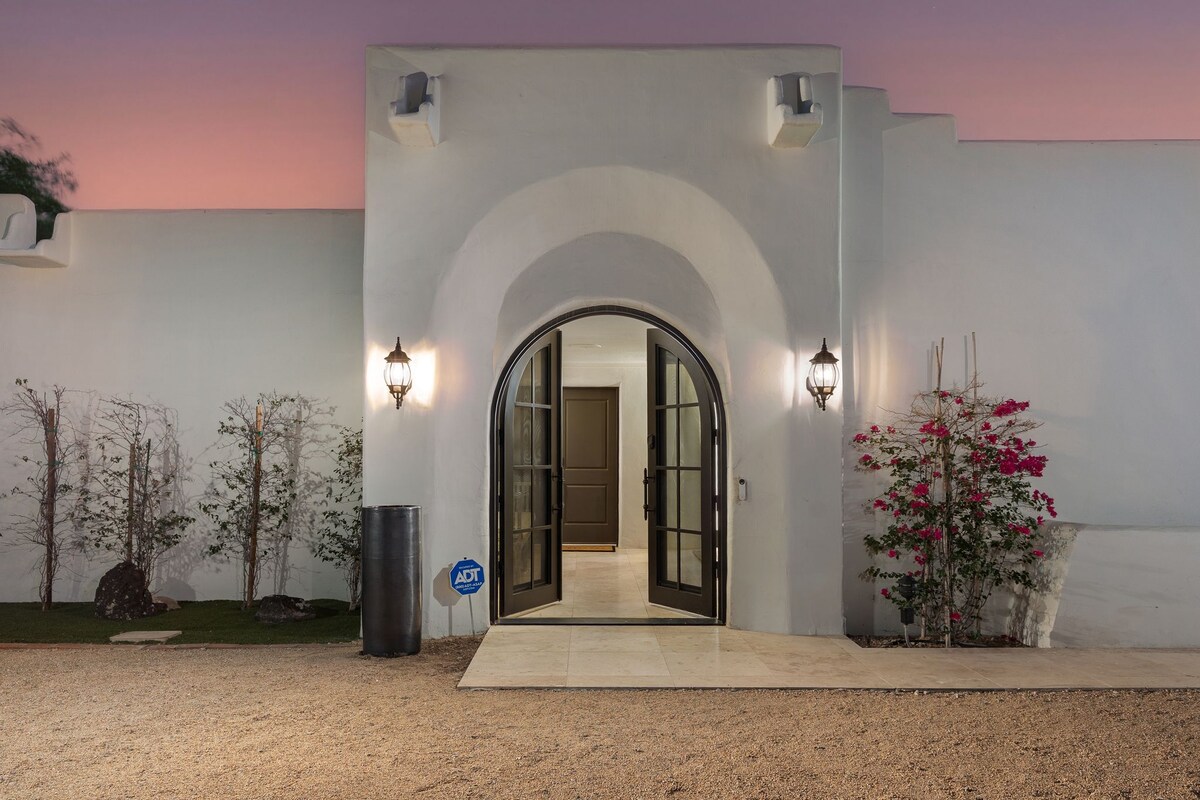 Welcome to The Hidden Hacienda Scottsdale! A fun, whimsical retreat with cowboy-chic decor, pool, spa, karaoke, and games—perfect for bachelorettes, families, or golf getaways. Sleeps 10 with comfy beds, smart TVs, a pool table and a fully stocked kitchen. Lounge beneath swaying palm trees, practice your swing on the mini putting green, or unwind in your private backyard oasis with cozy seating fire-pit and outdoor tv. Minutes to Kierland Commons, top golf courses, Spring Training and more!
