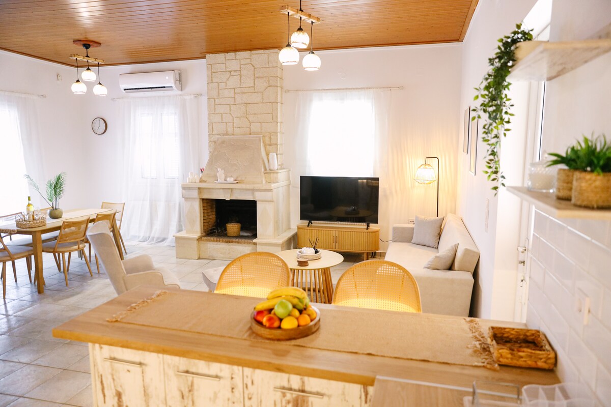 Our detached house is a 5-minute walk from the village center, where you will find restaurants, shops and a supermarket. Within a short drive, you will find beautiful beaches, as well as Lake Caiafa. In addition, the archaeological sites of ancient Olympia and Epicurian Apollo are very close by car. Our detached house offers all the comforts you need for a pleasant stay.