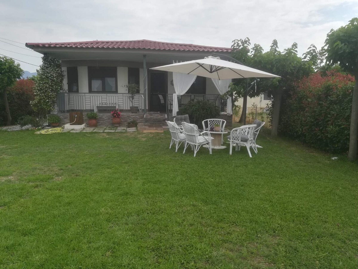 Relax and enjoy your vacation in this calm and elegant space. The house is 200 meters from the sea, 500 meters from super market/food courts and beach bar. It is ideal to relax in a fully renovated house but also to experience the nightlife 5 km away in Asprovalta with many options.