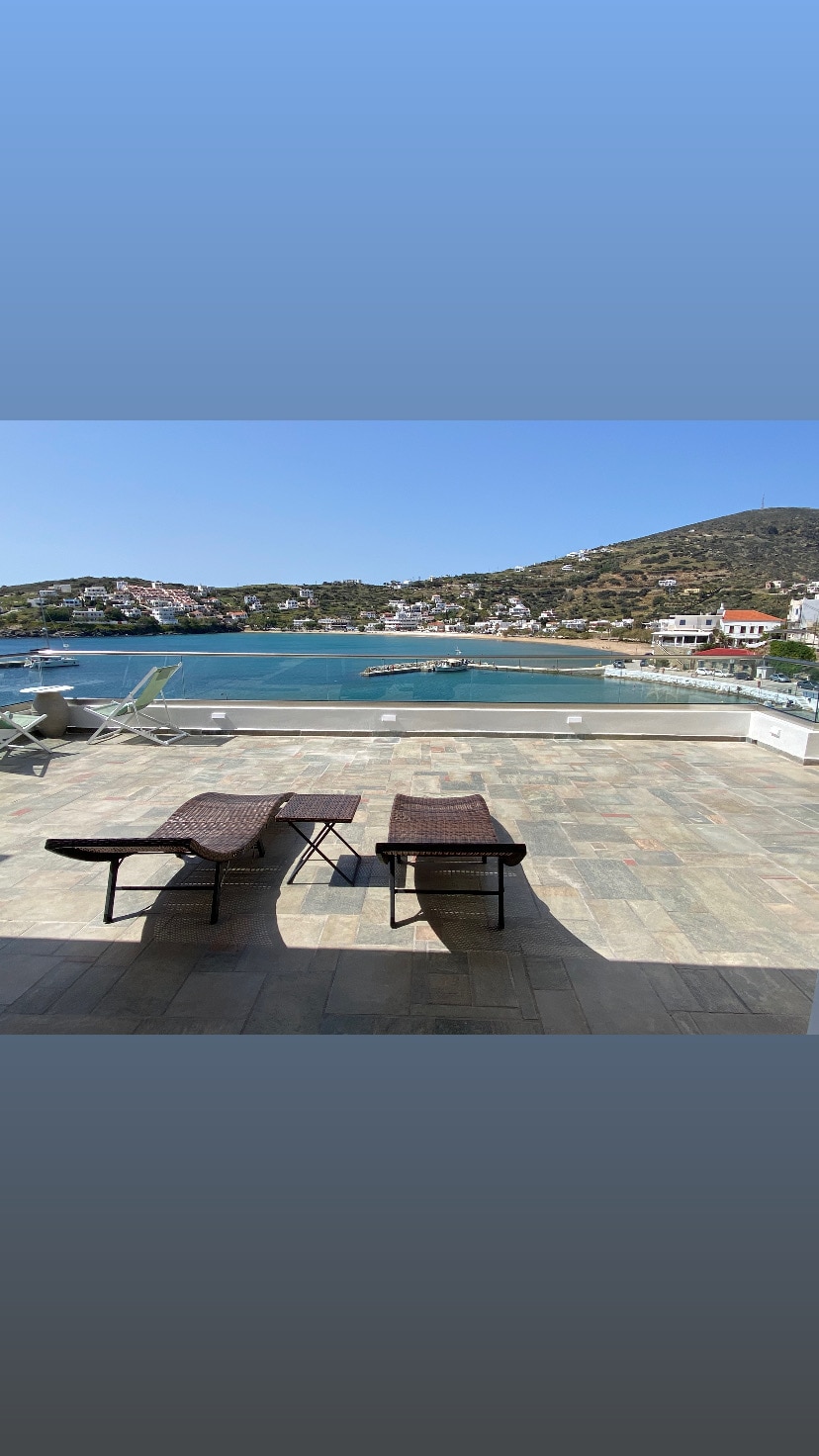 Renovated in 2024, new beds, mattresses, bathroom with shower, flooring, windows, etc. , in walking distance from 2 of the most captivating beaches of Andros island and the lively centre of Batsi town.Can be rent with adjacent apartment (seen on my profile) for big companies for up to 9people! The apt. lies in a big plot with private garden, offers all the facilities necessary to feel like home, and a big private terrace with breathtaking view to Batsi Bay and the Aegean sea.
