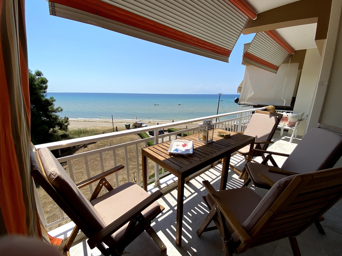 An stunning flat in the top, 2nd floor (only by stairs) , situated right on the water It's a comfortable with big balcony and a breathtaking view! It's located in the city centre and the beach is ideal for families looking for quite holiday.Super markets beach bars and taverns are availiable within walking from the flat. The flat has two bedroom,a living room with a sofa-bed, a fully equipped kitchen, wc and shower. Only 20 minutes drive from the airport and 25 minutes from Thessaloniki!