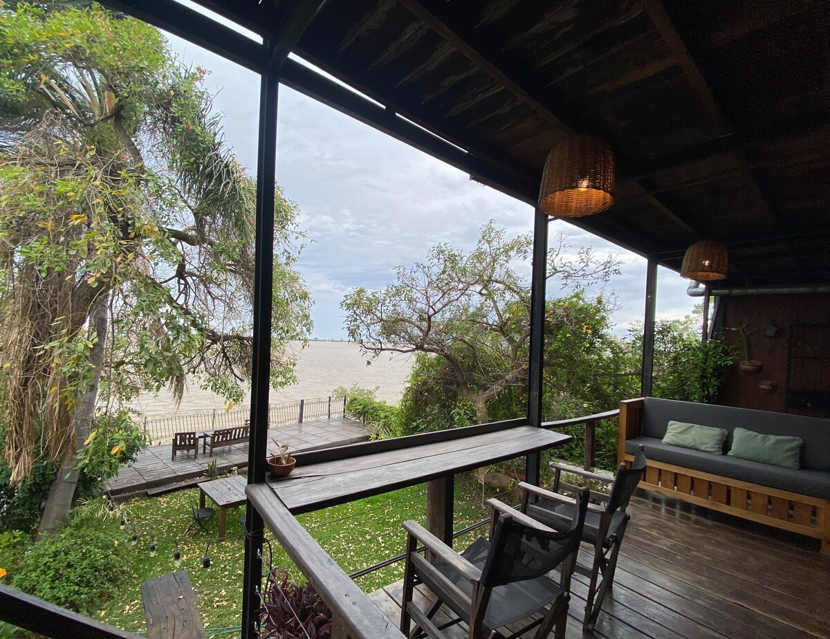 Casa quinta frente al rio, dentro de un barrio privado. La planta baja es un gran ambiente que combina living cocina comedor, siendo cómodo y funcional. Hay un baño con ducha. En la planta alta encontramos 3 habitaciones de camas matrimoniales con placard, todas con vista al rio. 1 baño completo + antebaño. Asador y pileta, en amplio en jardín. Hay 2 heladeras y 2 cocinas. Tranquilidad absoluta y conexión con la naturaleza. Fogonero. No se aceptan visitas. La luz se cobra aparte. 400p/wt