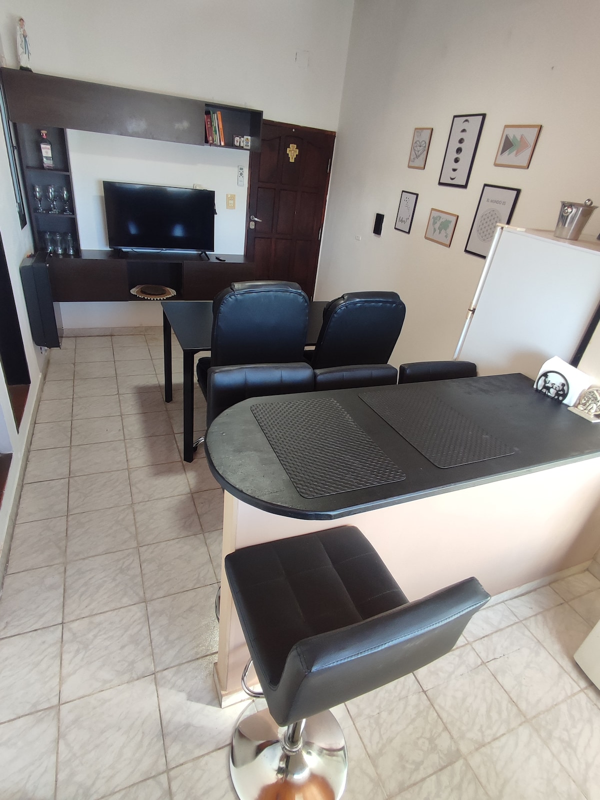 Relax in this peaceful accommodation and enjoy the view of the Paraná River Unbeatable location, you have everything within easy reach 3 blocks from the beach, 2 from the supermarket and 4 from the main square Well-lit rooms, a double bed with air conditioning, a bunk bed with a fan, and a living room with a sofa bed Fully equipped; a stove, oven, electric kettle, TV, 2 air conditioners, and everything you need for your stay The best part is the gazebo with a grill and river view with the outdoor pool
