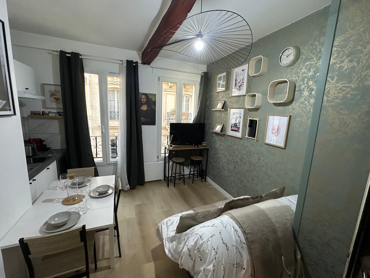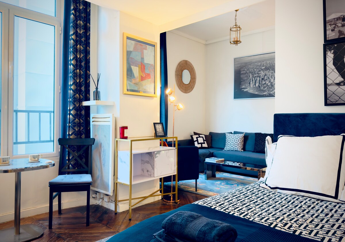 The apartment is located near the Moulin Rouge, in the Montmartre district in the heart of an atypical and very quiet place;It is a 50m2 space which does not overlook the boulevard, ground floor, located far from the noise of the street, high standard with a beautiful bedroom, a relaxation area, a lunch/dinner area, work area , kitchen .It is equipped with new technologies, excellent wifi, a large format television (85p), hi-fi sound and adjustable lighting according to your tastes