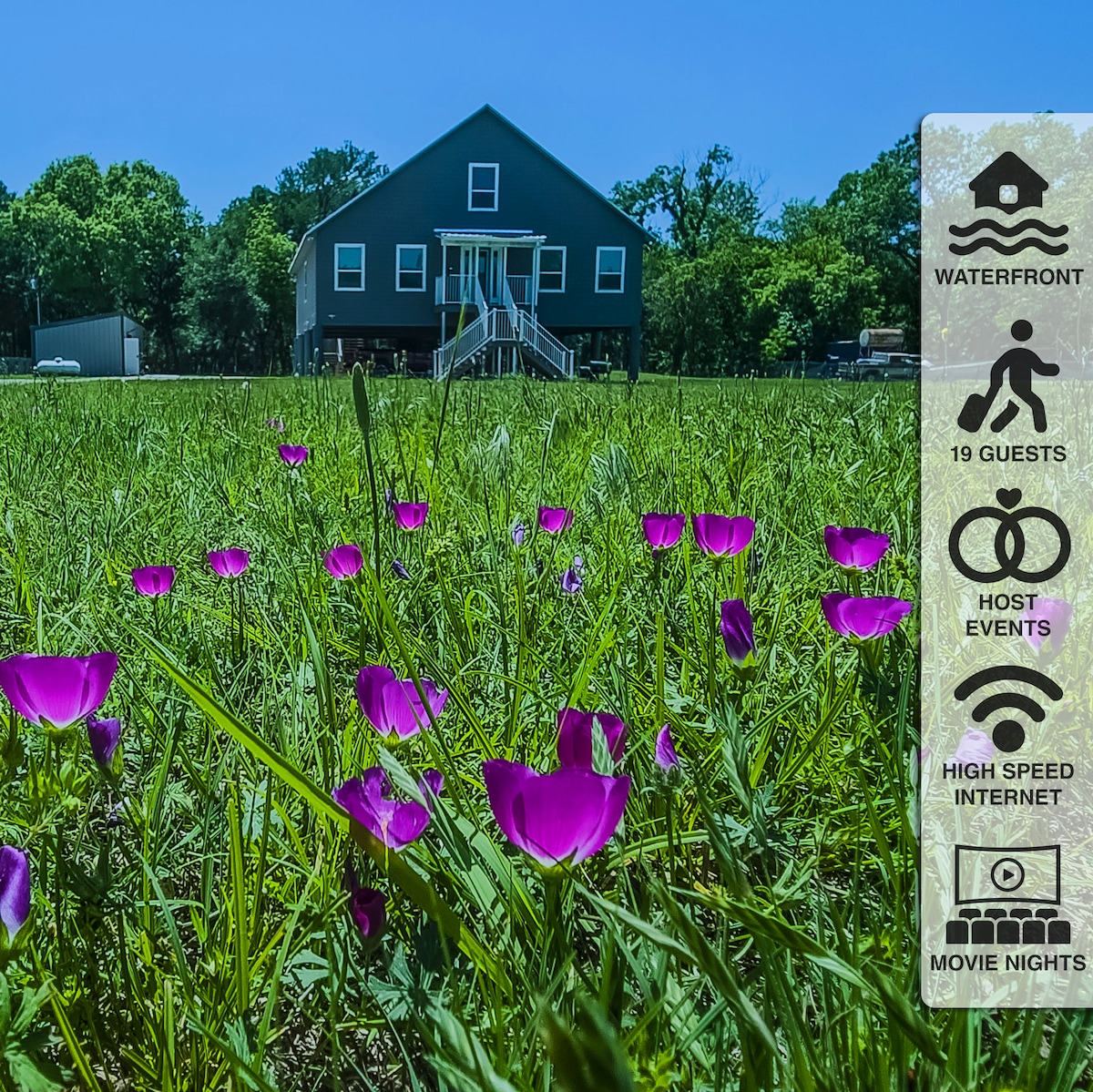 Experience modern waterfront living at Brazos Breeze at Tin Top! This inviting 2-acre retreat offers a variety of activities and comfortable accommodations for families and groups. Sleeps 19. Enjoy a private dock for fishing and boating, a home cinema for entertainment, a game loft for fun, and a firepit for evening gatherings. With a fully equipped kitchen, king beds, and ample space to relax, Brazos Breeze at Tin Top provides the perfect blend of adventure and comfort. Book your getaway today!
