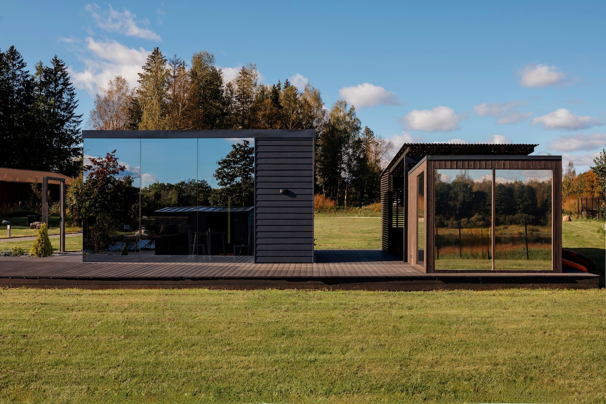 Modern vacation home on the shore of the water's eye with a steam sauna