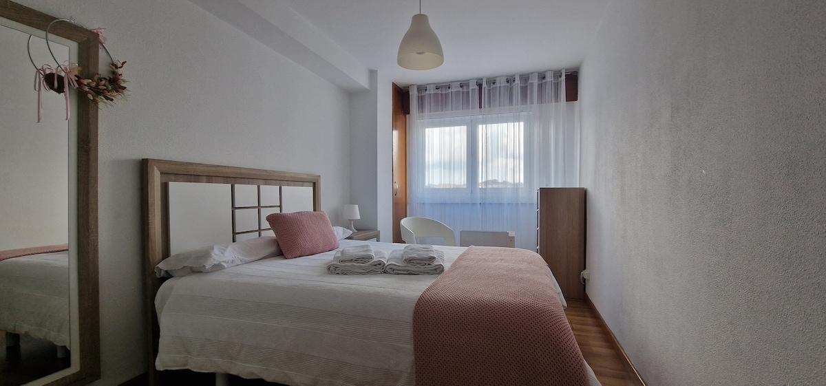Todo exterior,bien ubicado,a 200 metros del paseo maritimo,cerca de un centro comercial,parada de bus y farmacia a 50 metros y centro de salud ,tv en todas las habitaciones, microondas ,lavadora y todo el menaje necesario ,vistas excepcionales, wifi, y pegado al monte se san Pedro y el milenium. Fácil aparcamiento, segundo piso sin ascensor, pocas escaleras y facil de subir. Super tranquilo.