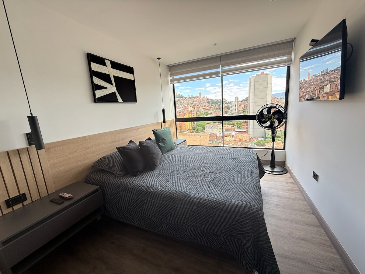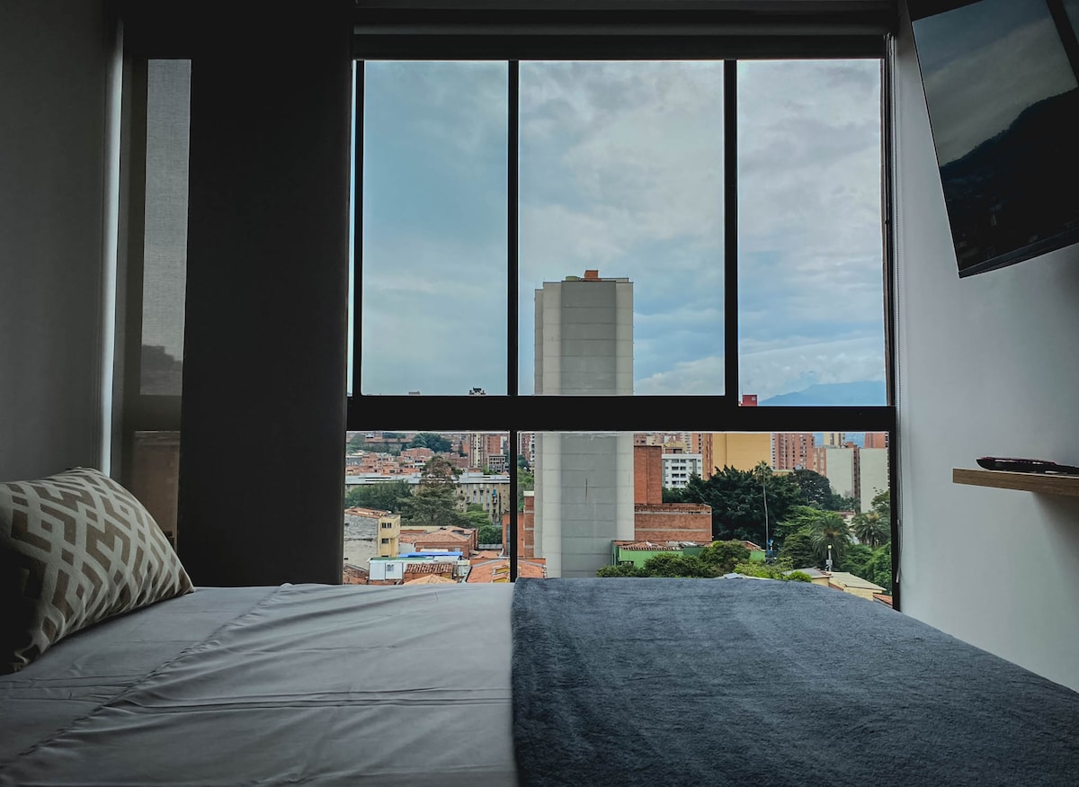 RECENTLY RENOVATED -High-speed internet great for remote work -Brand new A/C -Fully renovated Industrial design apartment -King size bed -Breathtaking views of Medellín (trust me, worthwhile to stay here) -19th floor -Unbeatable location in Poblado near to Provenza and Lleras Park -Modern amenities -Spacious living area -Smart TV x 2 -Fully equipped kitchen -Washer & Dryer Tower -Pool -Gym -Coworking space -Restaurant inside the building -Private parking -Self check-in -24/7 Security