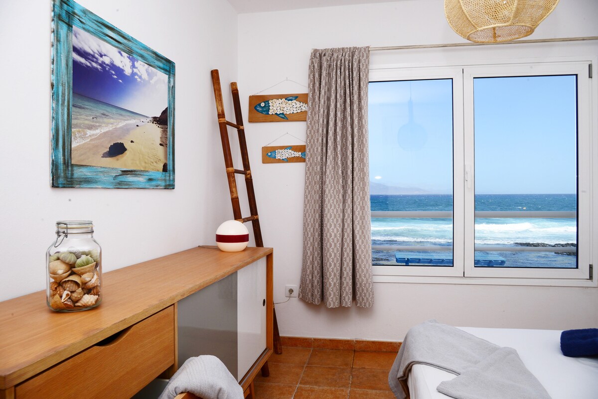Ocean Breeze El alojamiento que te hará sentir como en tu casa y en un barco flotando en el mar, gracias a sus preciosas y grandes ventanales disfrutaras cada dia de un almanecer increible con vista al mar y a las islas (lanzarote y lobos) donde, el balcon te permitirá disfrutarlo mientras estas bebiendo un café. La ubicacion es ideal, a la vez esta en una zona tranquila donde se escucha la unica melodia de las olas y a la vez esta cerca de todos los restaurantes, bares y tienda de Corralejo.