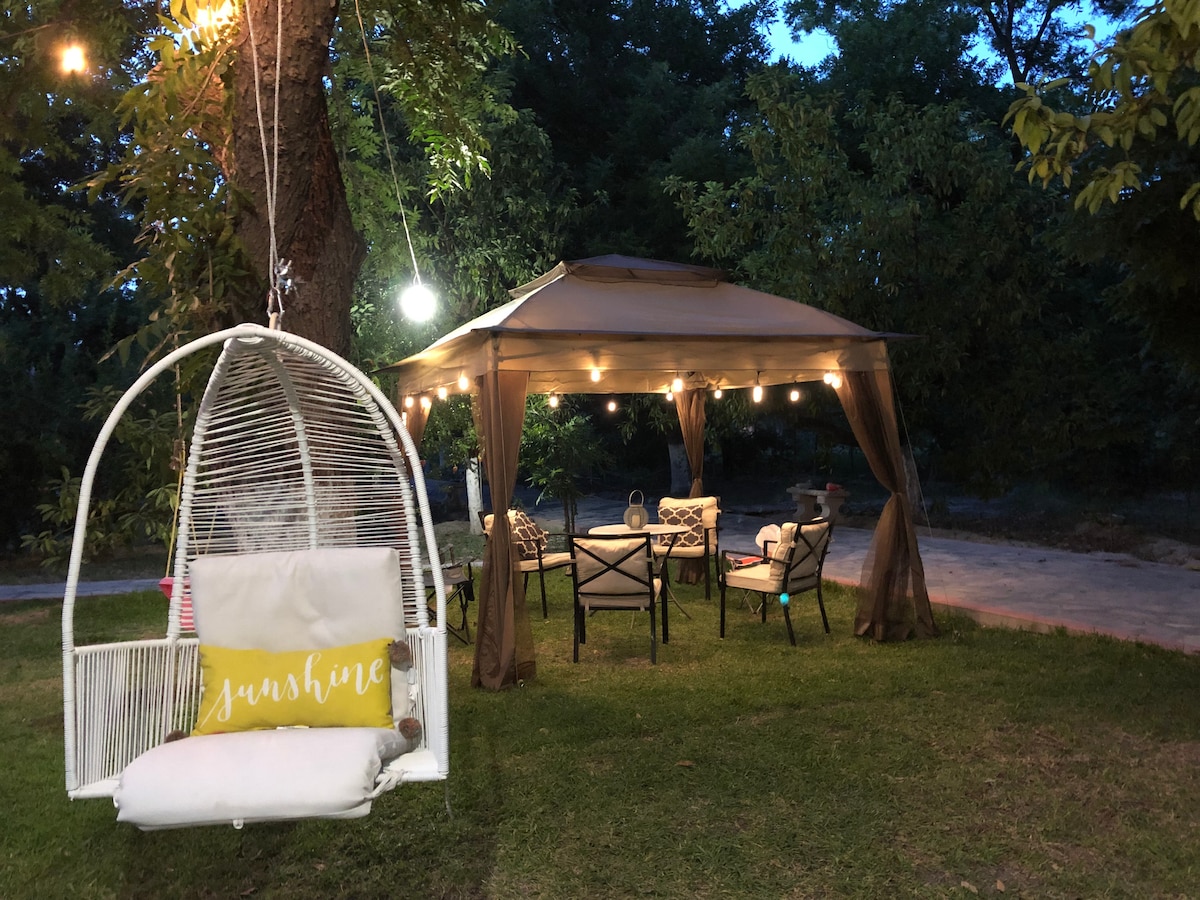 Beautiful separate room, air-conditioned, with private bathroom, which has a king-size bed, mini split climate, desks, lamps, TV, table, two chairs, coffee maker, dishes, cups and cutlery. It has access to a patio with a barbecue, refrigerator, sink, outdoor table and chairs. It is located one block from the main street and three blocks from Plaza del Reloj.